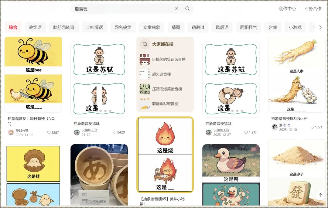 你现在到抖音小红书搜索“谐音梗”的关键词,可以找到一大堆出题的日更博主。
