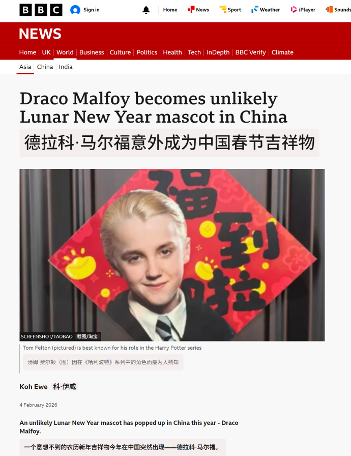 更离谱的是,梗从国内火到了国外。路透社、BBC、CNN等外媒争相报道,连演员本人汤姆·费尔顿(Tom Felton)也亲自转发,估计私底下正偷着乐呢。