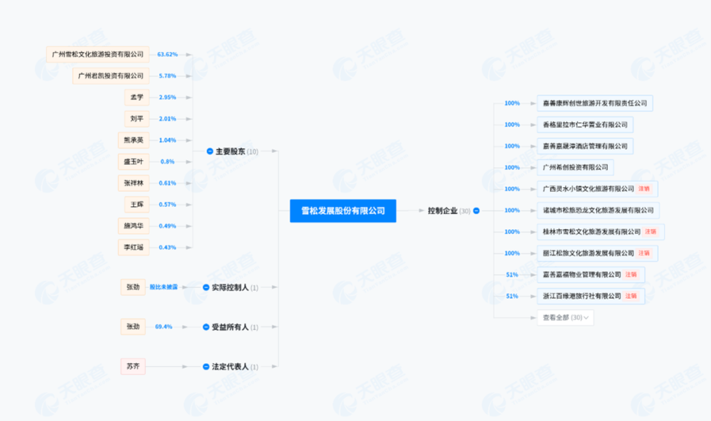 作为ST雪发的实际控制人,张劲通过广州雪松文化旅游投资有限公司及广州君凯投资有限公司合计持有公司69.4%股份,其中68.5%的股份早已被悉数质押且司法冻结,近乎全部实控权股权均处于受限状态。