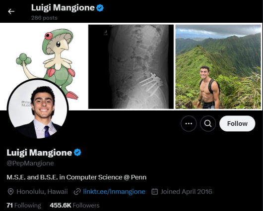 路易吉出身优渥,他的家族在马里兰州拥有大量房产,他自己也毕业于美国顶级私校吉尔曼男校,在宾夕法尼亚大学获得计算机科学本硕学位。