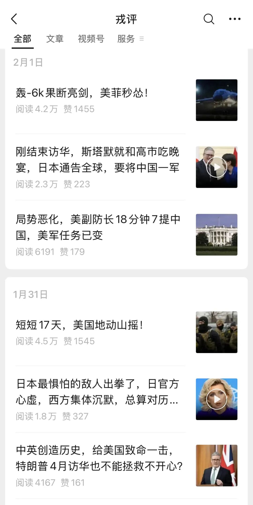 还有一个账号是我每天都会阅读标题但几乎从来不会点进去看的,叫“戎评”。