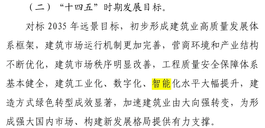 2021年,住房和城乡建设部发布《“十四五”建筑业发展规划》,明确提出推进建筑工业化、数字化、智能化升级。