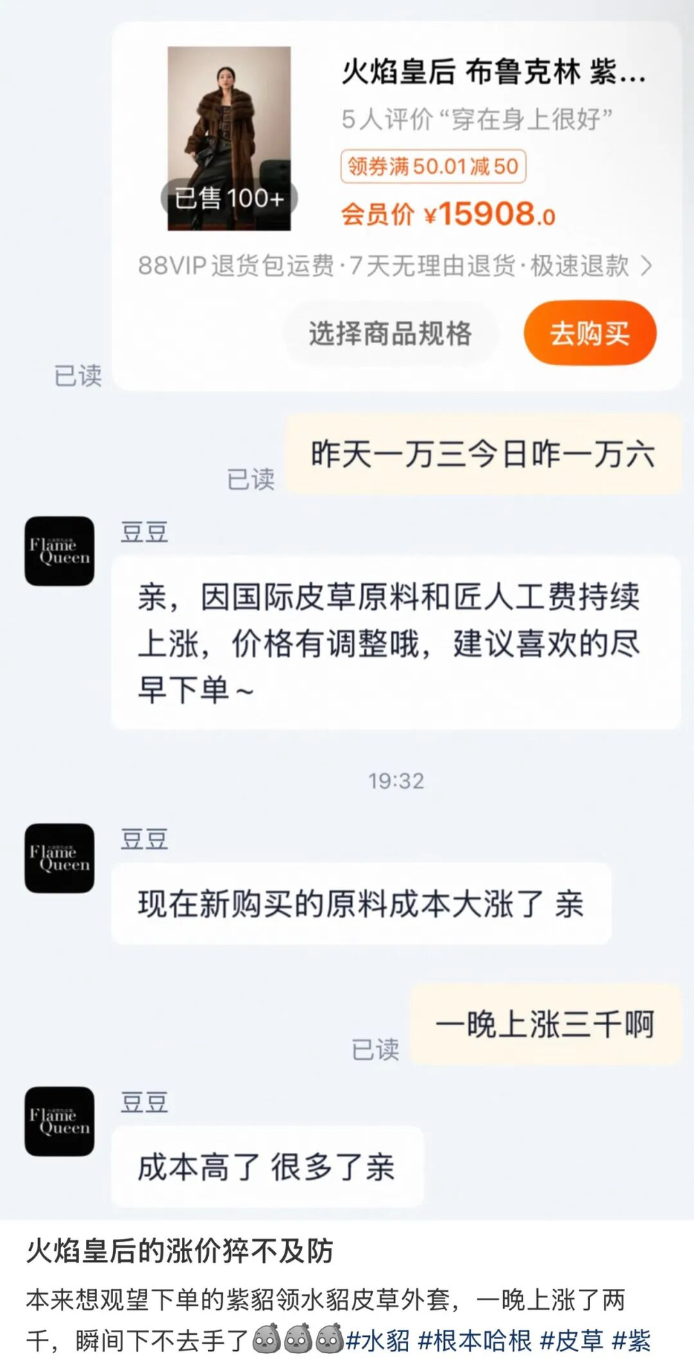 甚至皮草的线上购买指导、线下代购以及陪逛都伴随着涨价迅猛发展了起来。