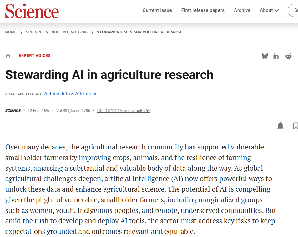 昨天发表在《科学》的这篇前沿研究,点透了农业AI的核心矛盾:AI能改变农业研究,但前提是我们找对了它的位置——它是助力研究的伙伴,而非主导农业的主人。下面,我们就来拆解农业AI的真实潜力、核心风险,以及让它真正落地赋能的科学路径。