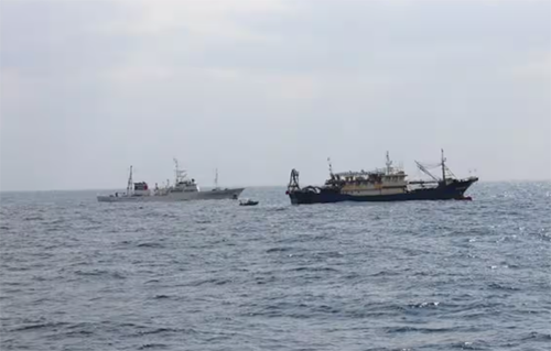 事发现场,被扣押的中国渔船(右)。日本产经新闻