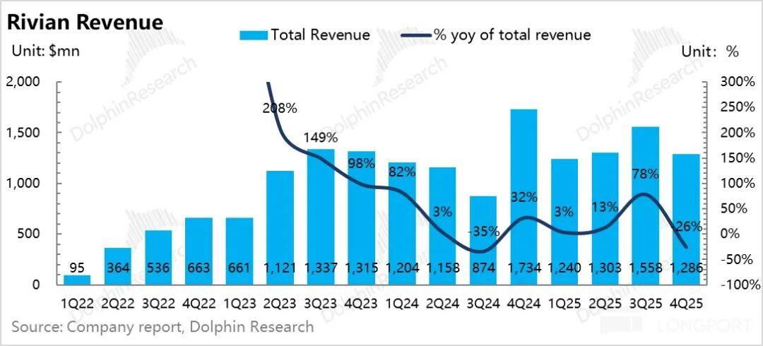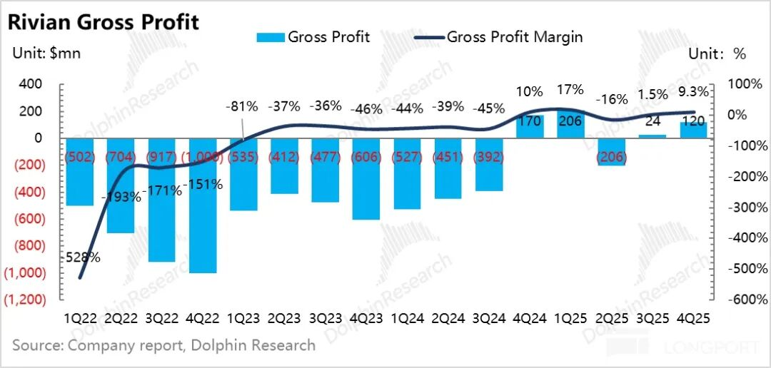 但四季度Rivian并未完全享受232条款的关税减免优惠,未来这一优惠将进一步显现,R2车型未来也将受益于此。