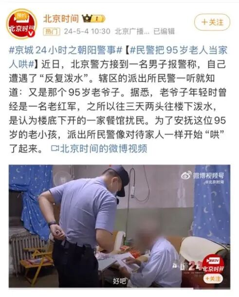 [1]纪录片《京城24小时之朝阳警事》.95岁老红军三天两头往楼下泼水,北京警察:事出有因[EB/OL].
