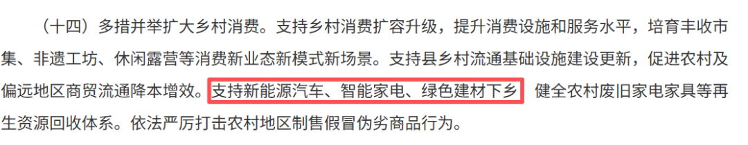 一是新能源汽车下乡,该行动被写入今年中央一号文件。