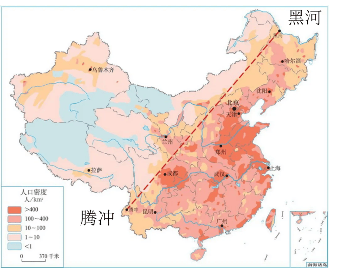 1935年,地理学家胡焕庸在黑河—腾冲之间划下一条直线:线东南方向36%的国土居住着96%的人口;线西北方向64%的国土,仅有4%的人口。