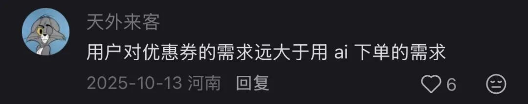 这个功能大家都觉得没啥意思:外卖要货比三家精心挑选,怎么可能简单粗暴地从AI给的选项中四选一。