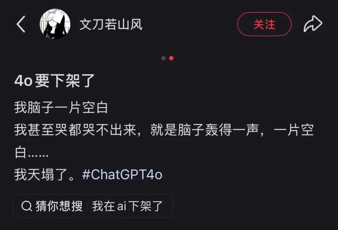 前几天,OpenAI宣布了GPT‑4o的退役计划。这个消息发布后,人们才惊奇地发现,原来在这串代码背后,竟然隐藏着规模如此庞大的人机恋群体。