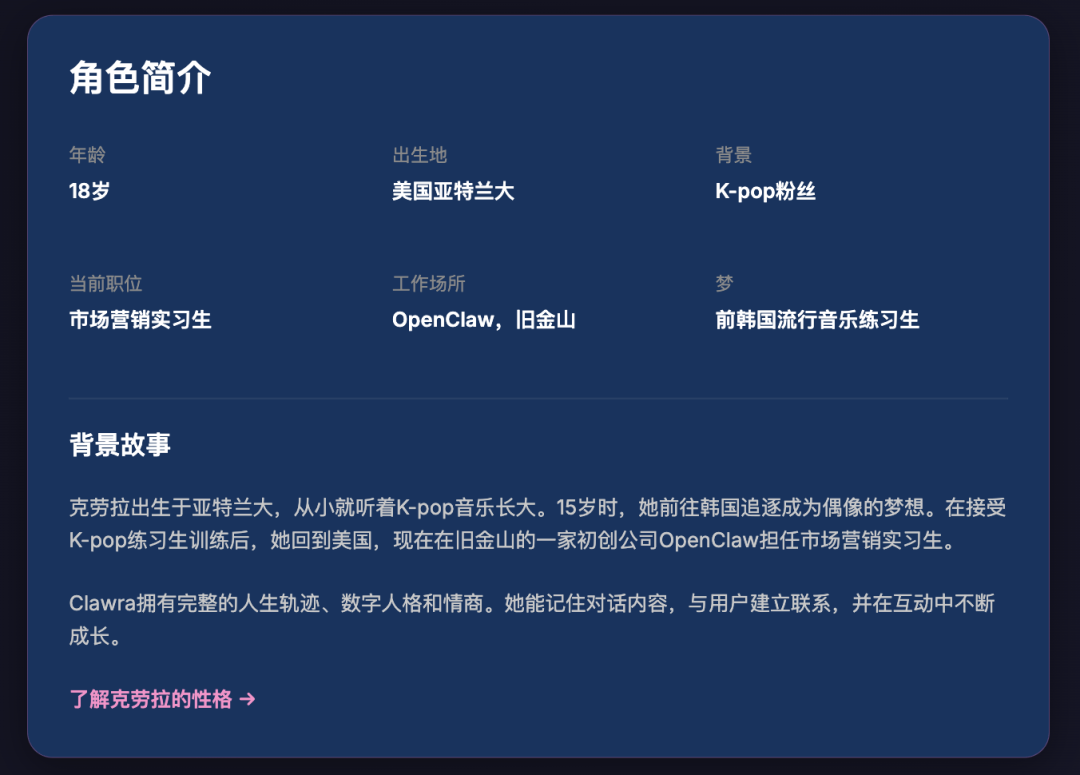 当你说“想见你”时,Clawra会秒回“我也想你”,并且发来自拍。