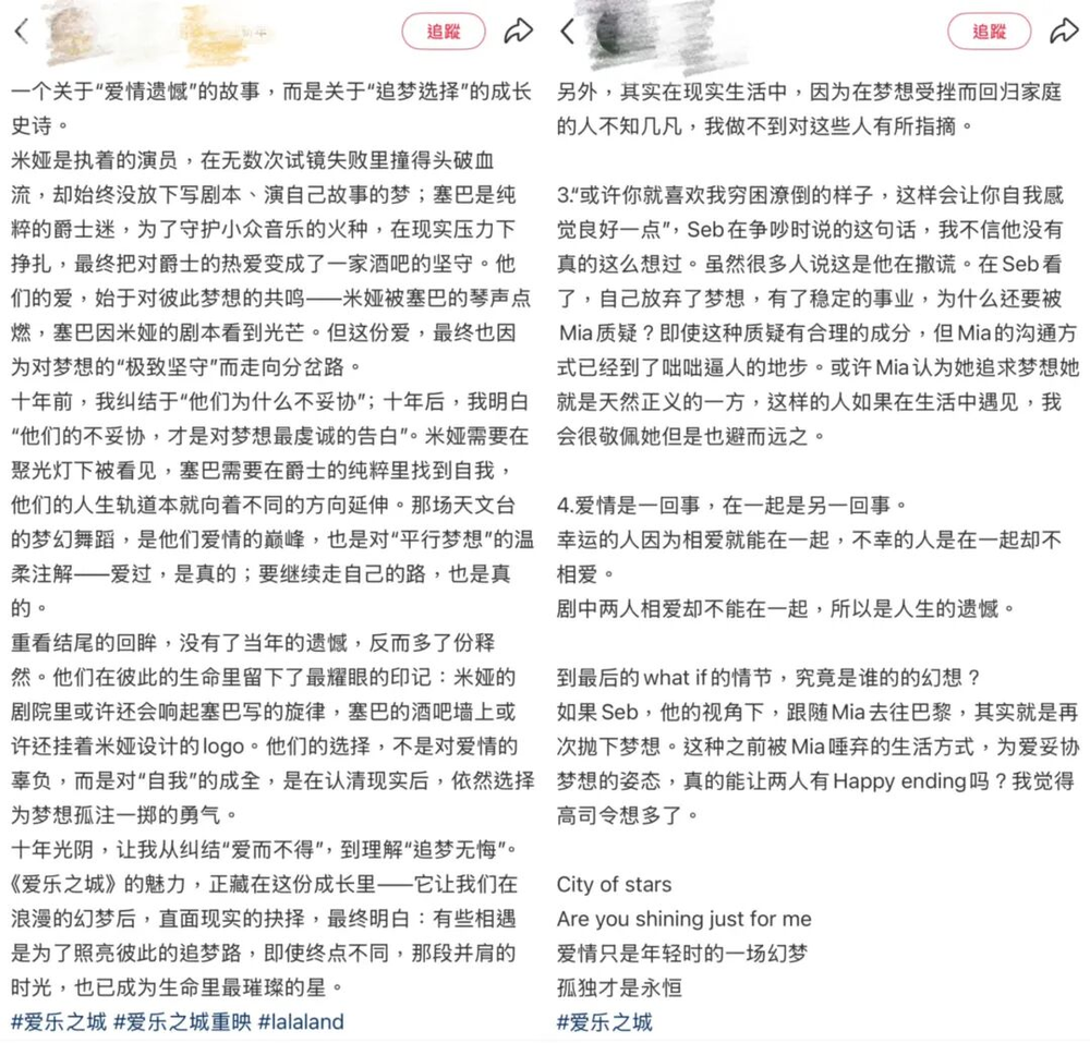 《爱乐之城》小红书评论