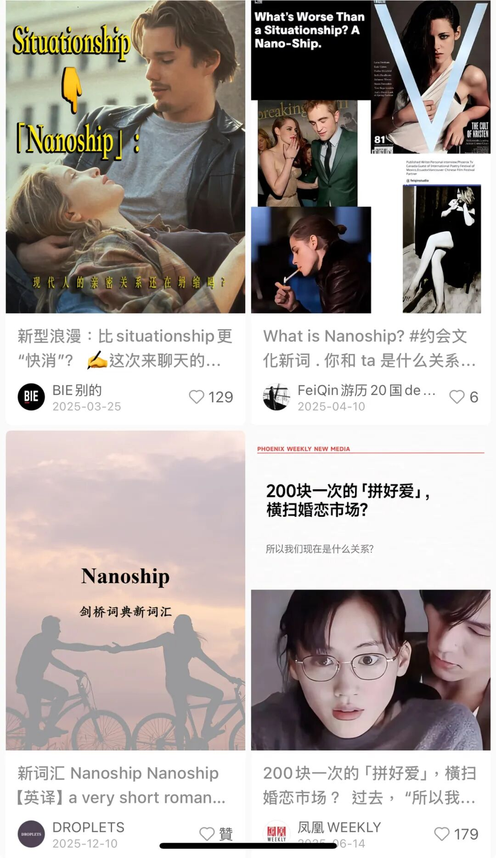 “恋爱脑”从一种单纯的深情演变为全民警惕的风险,需要付费请主播“骂醒”;Situationship、Nanoship等描述短暂、轻量关系的词汇进入日常,用来消解承诺的沉重。