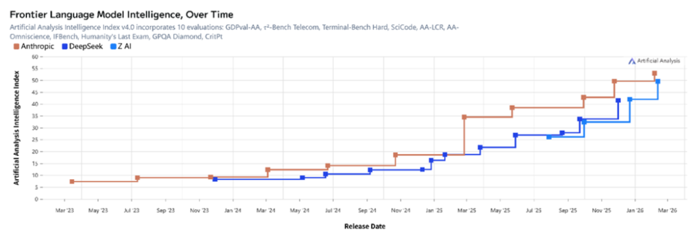 (按照ArtificialAnalysis,目前美国最强模型来自Anthropic,中国来自智谱)