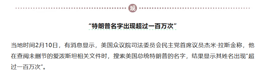 比如民主党议员说特朗普在爱泼斯坦档案里出现了一百万次这事,听起来就不那么靠谱。特朗普作为美国总统情况特殊,很容易作为大背景被提到,不能只按照次数计算,关键得看里边有多少和案情直接相关的内容。之前引发质疑特朗普浪潮,也是针对他的具体指控。而这些议员有能力区分这些吗?答案是否定的,因为资料数量太多了。这些议员去司法部看档案,不过是一种获得政治声望的方式罢了,他们嘴上说得大义凛然,但是压根不在乎怎么解决问题。