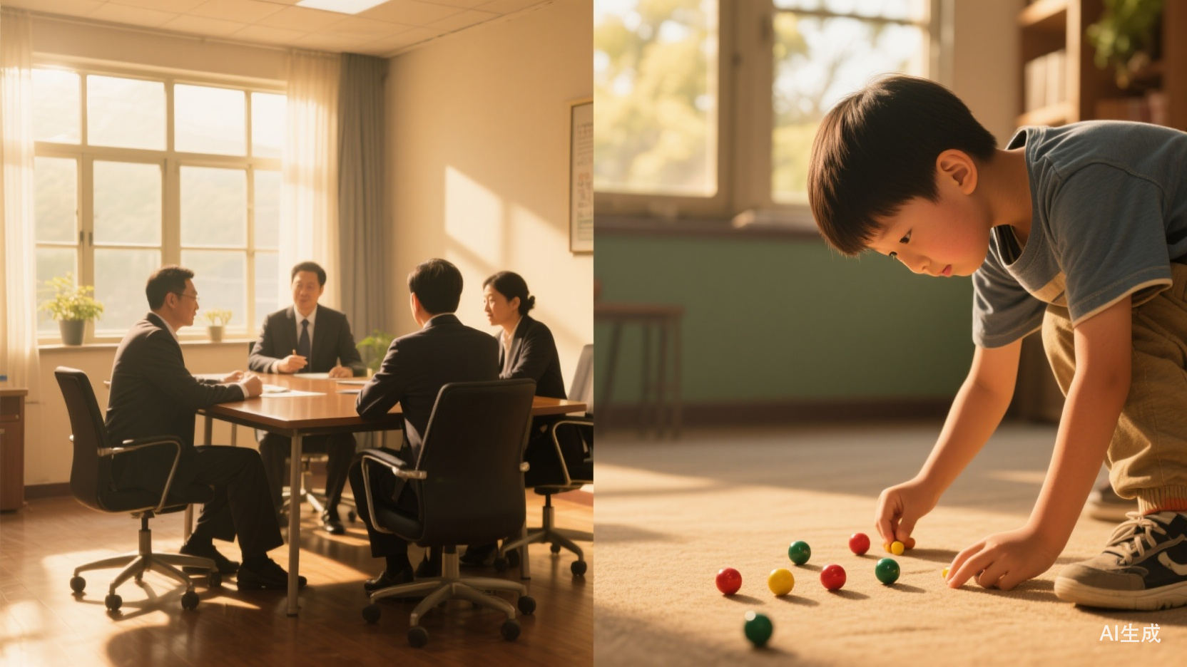 短片以跨时空镜像对照的结构展开:一边是过去的胡同与教室,孩子们打着弹珠、拼桌玩闹、追逐四驱车满街跑;另一边是当下的会议室、写字楼与城市路网,成年人围桌讨论方案、深夜连麦攻沙、开着车穿梭街巷。