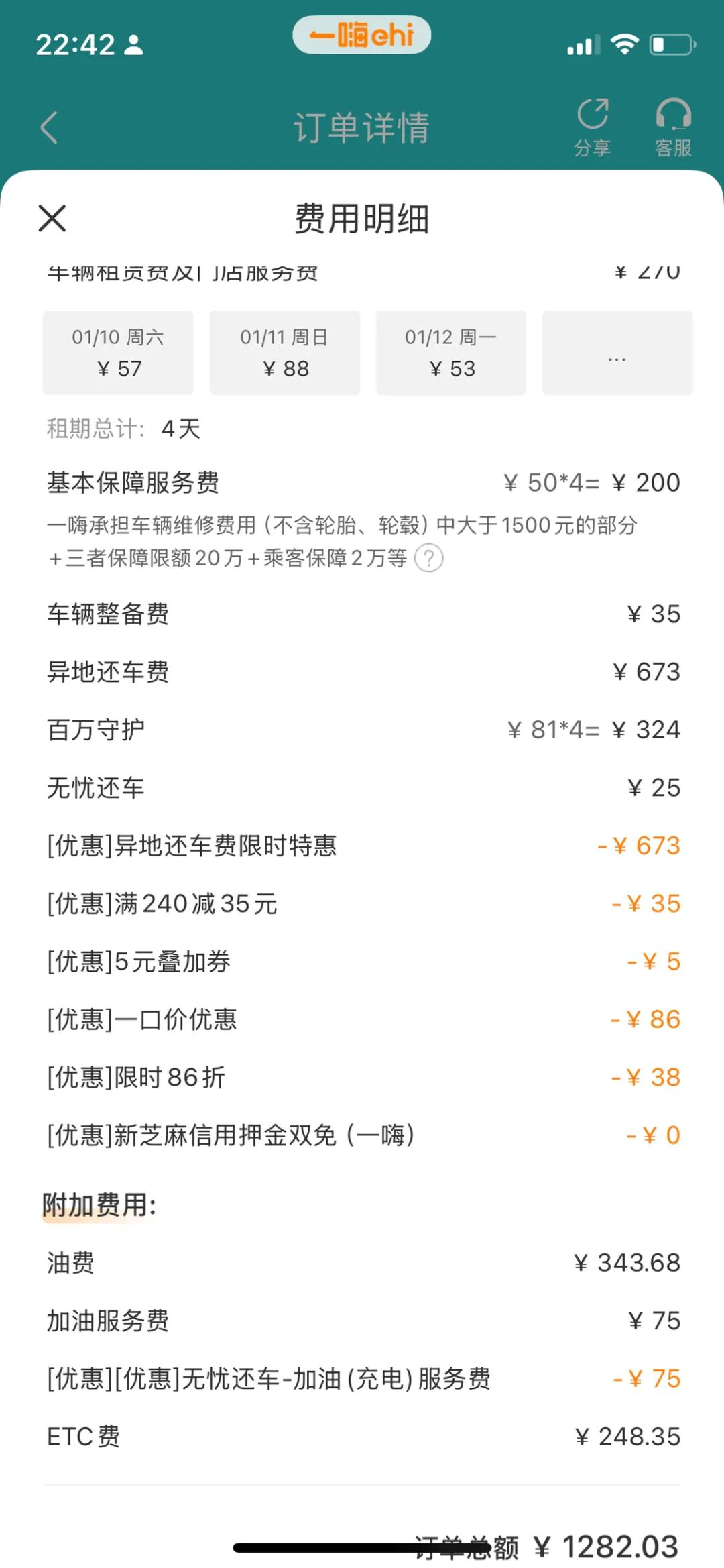 这是全程4天的总费用(我选了100万的第三者保险)
