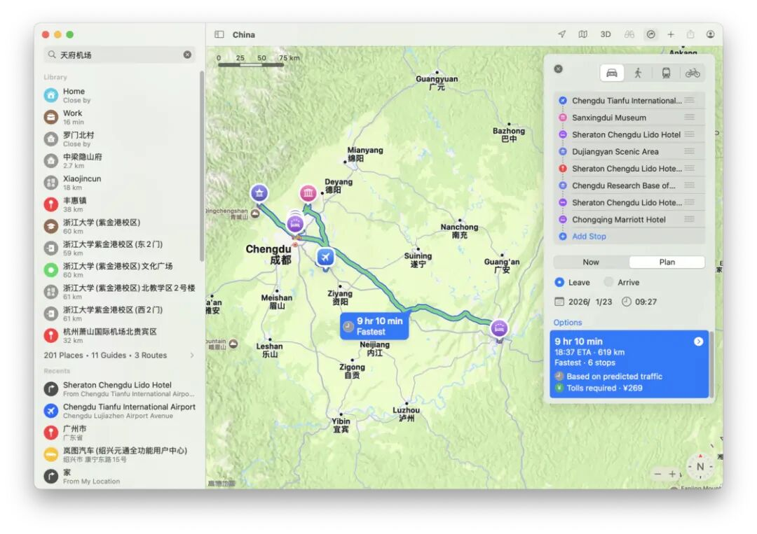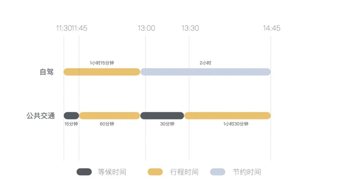 也就是说,从1月10日11点航班落地,到12日19点抵达重庆万豪,这总计56小时的可支配时间中,自驾比公共交通硬生生多出了接近6小时的活动时间。但别忘了,除了行程时间,公共交通还存在1个隐形时间成本:等候时间。由于公共交通是按照计划运行的,我们必须提前抵达上车点。典型的例子例如机场大巴、火车、飞机等,你都需要提前20分钟乃至更多的时间抵达,而这部分等候时间是不会被地图软件计算在内的,所以你看到地图给出的路程时间估计其实并不准确。
