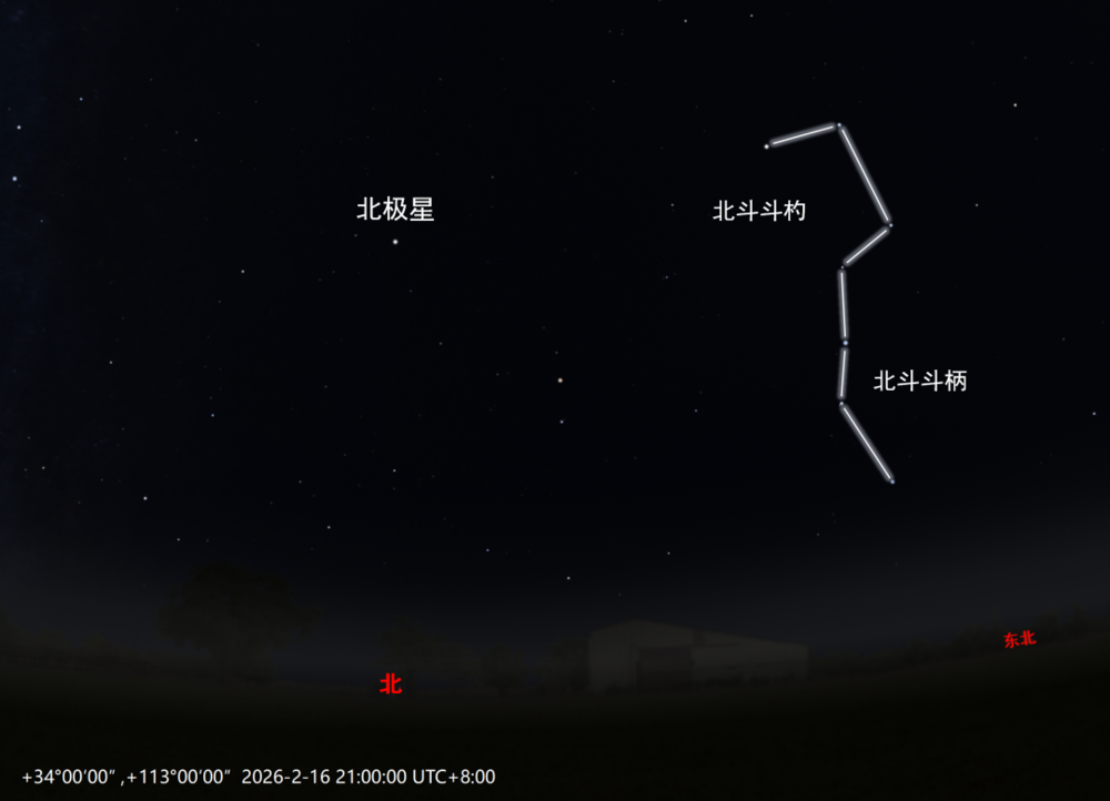 天文软件模拟的2026年除夕夜的北斗回寅天象。