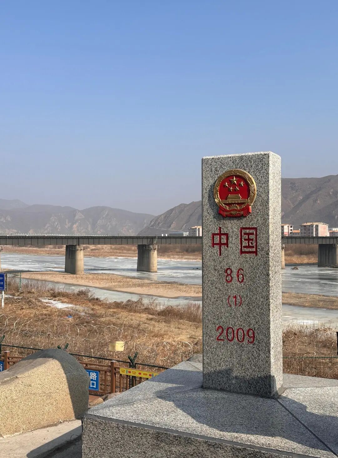 此时的图们,气温寒冽,但阳光很好,照在江面上,冰层泛着刺眼的白光。图们公路口岸的国门高大肃穆,国门一侧,是成排的商铺和冒着热气的小吃摊,操着各地口音的游客排着长队,等待与86号界碑合影。