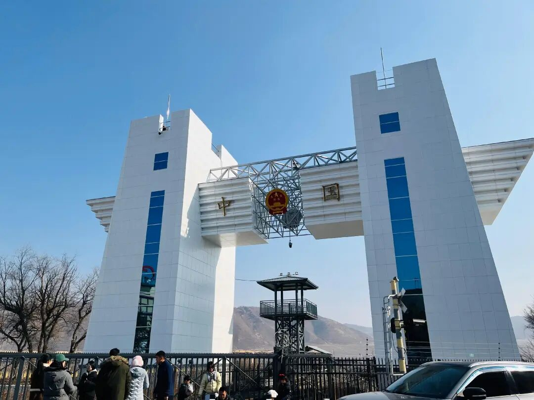 这是中朝之间最重要的陆路口岸之一,由公路口岸和铁路口岸组成。铁路口岸的铁轨从中国延伸出去,直接连接着图们江上的铁桥。公路口岸的国门则是一座高大的混凝土建筑,下方是车辆通行的通道,上方有观景平台,站在平台上,可以俯瞰整个口岸的全貌。