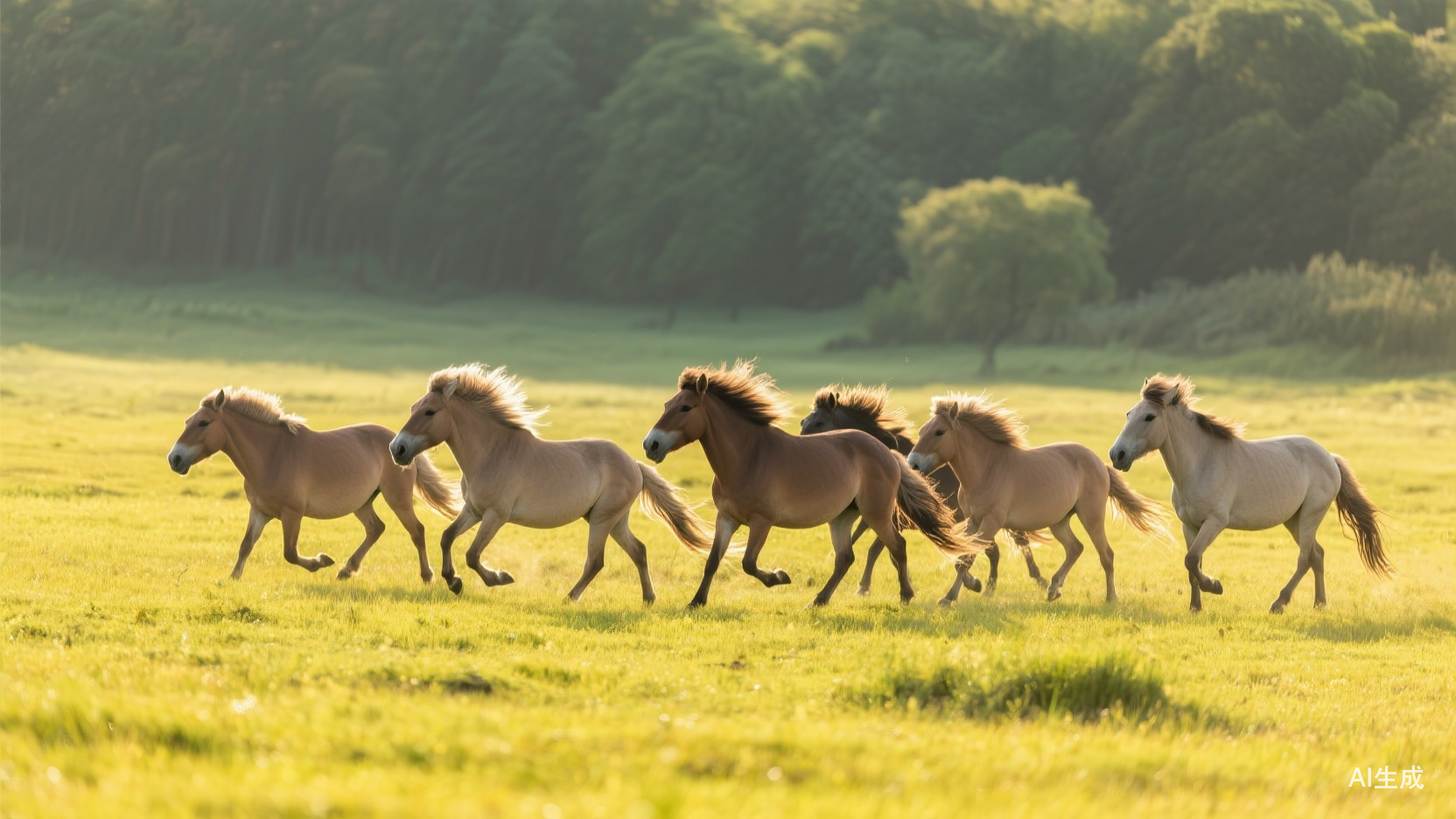 伴随着急促而有力的蹄声,一群沙栗色的身影从草场尽头疾驰而来。