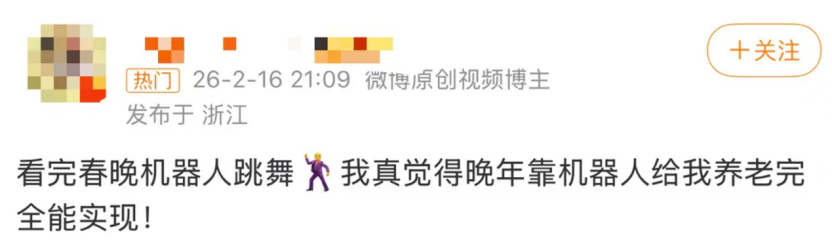而当机器人和奶奶互动,想必不少观众想到了自家的老人,闪过如果自己不在家,机器人能够陪伴长辈的念头。养老看护、情感陪伴、家务辅助……机器人不再只是舞台上翻跟头的杂技演员,逐渐成为可以走进家庭、填补陪伴空缺的硅基家人。