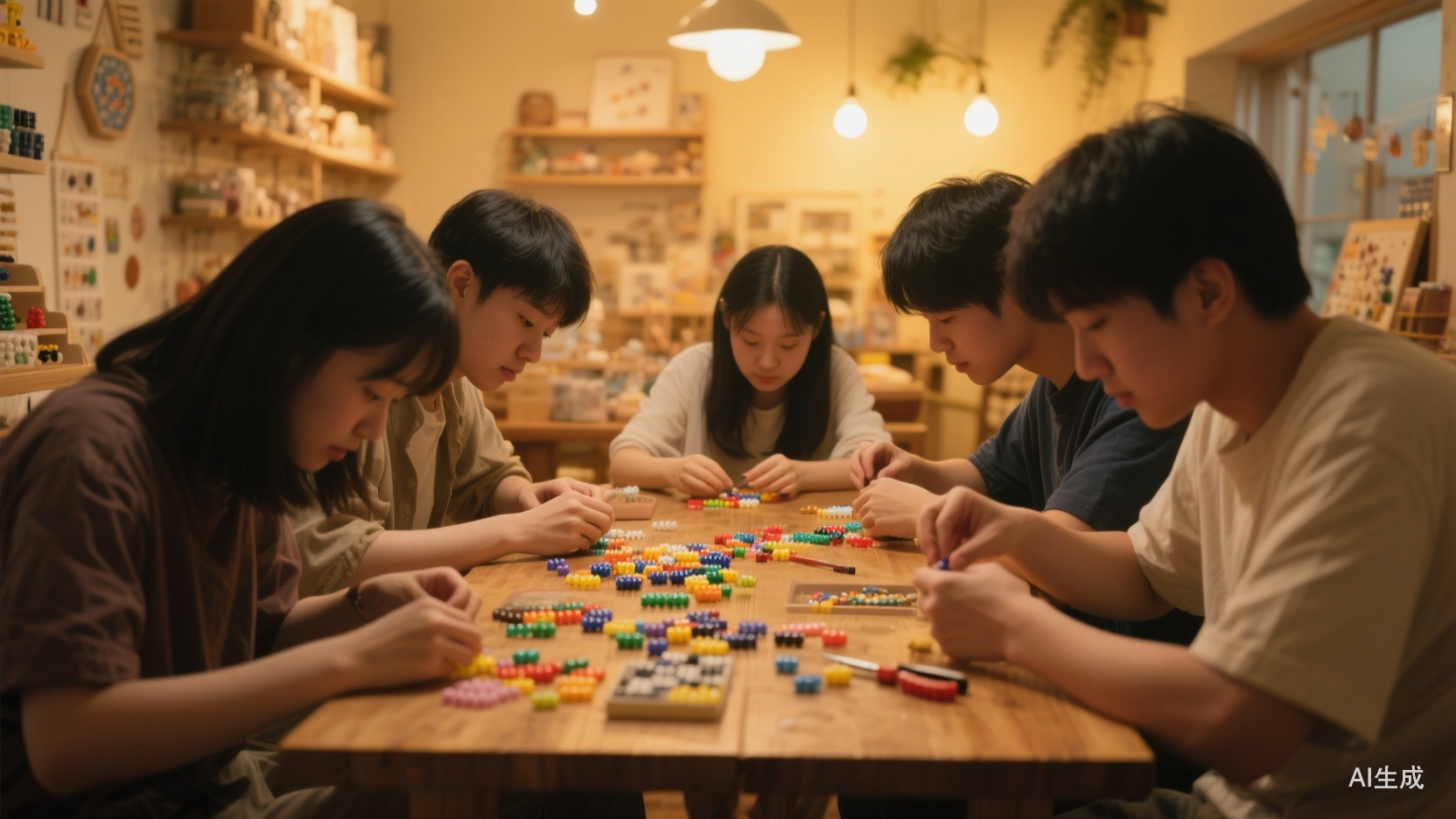 轻资产,快周转,复购率高——这是很多人对这门生意的第一印象。一个能摆下几张大桌子的空间,一批成本可控的豆子和工具,再配少量人手,就能开店。图纸常由顾客自带,拼接过程由顾客完成,店方只需要提供空间、材料和烫豆等服务。