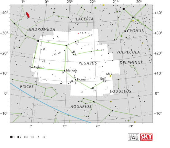 飞马座的名称来自希腊神话中有翼的马:天马,覆盖天空1121平方度,在88个现代星座中面积排名第7位。
