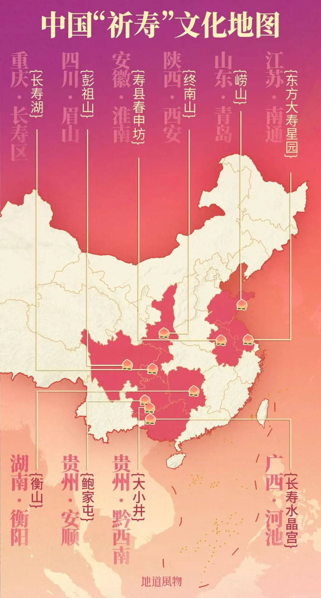 本文来自微信公众号: 地道风物 ,制图:夜鸣蝉,图片编辑:=G,作者:风物菌,原文标题:《中国“福禄财寿”地图丨新春“寻寿记”,带你过好每一天》
