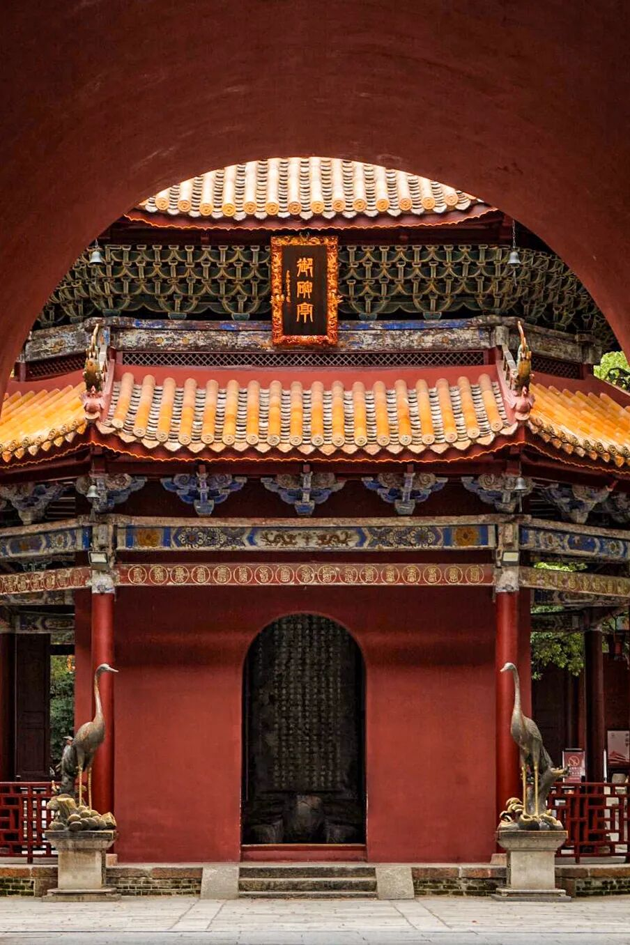 南岳庙御碑亭,亭前仙鹤也是长寿的象征。