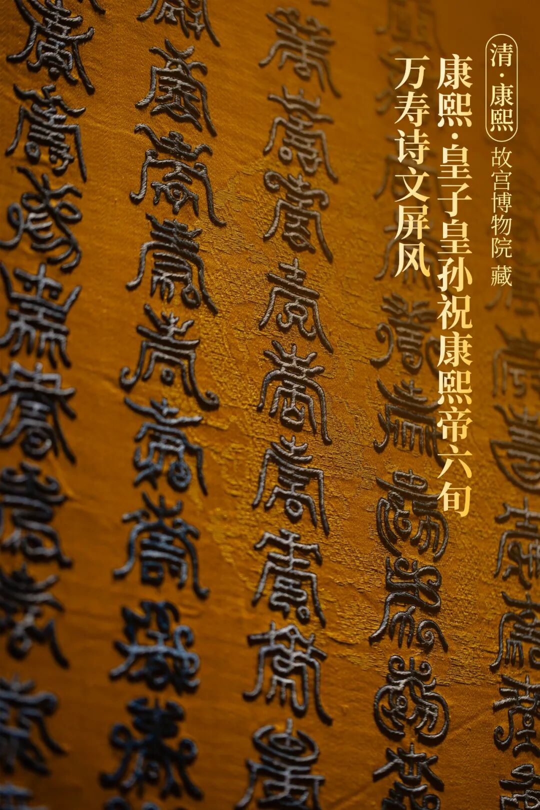 屏风上有上万个不同的篆体寿字。