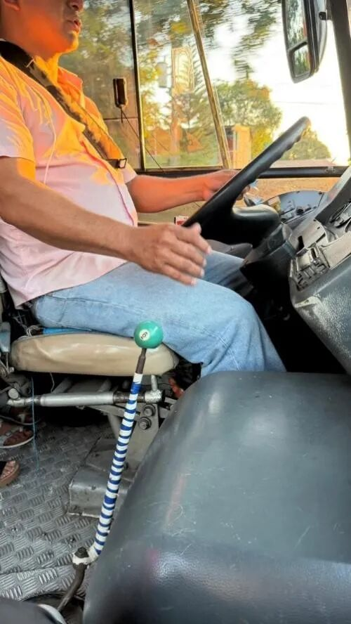 中美洲破破烂烂的公交车,甚至用台球当换挡杆手柄。作者供图