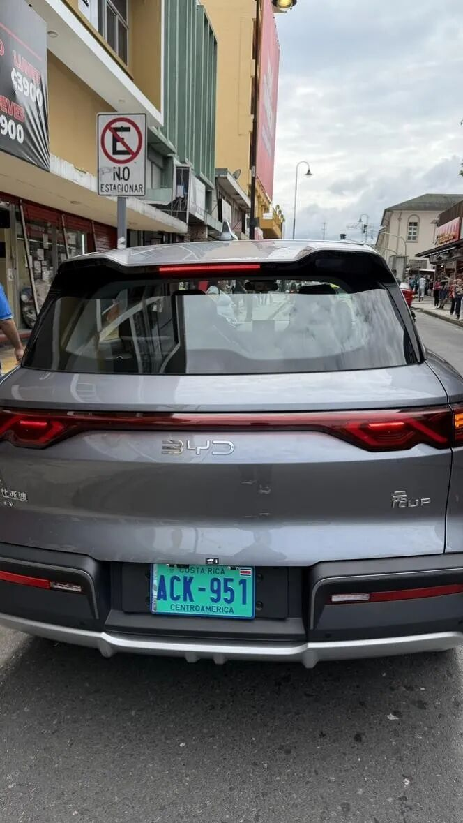 这辆哥斯达黎加街头的元UP,甚至还保留着国内新车出厂时贴着的中文标签。作者供图