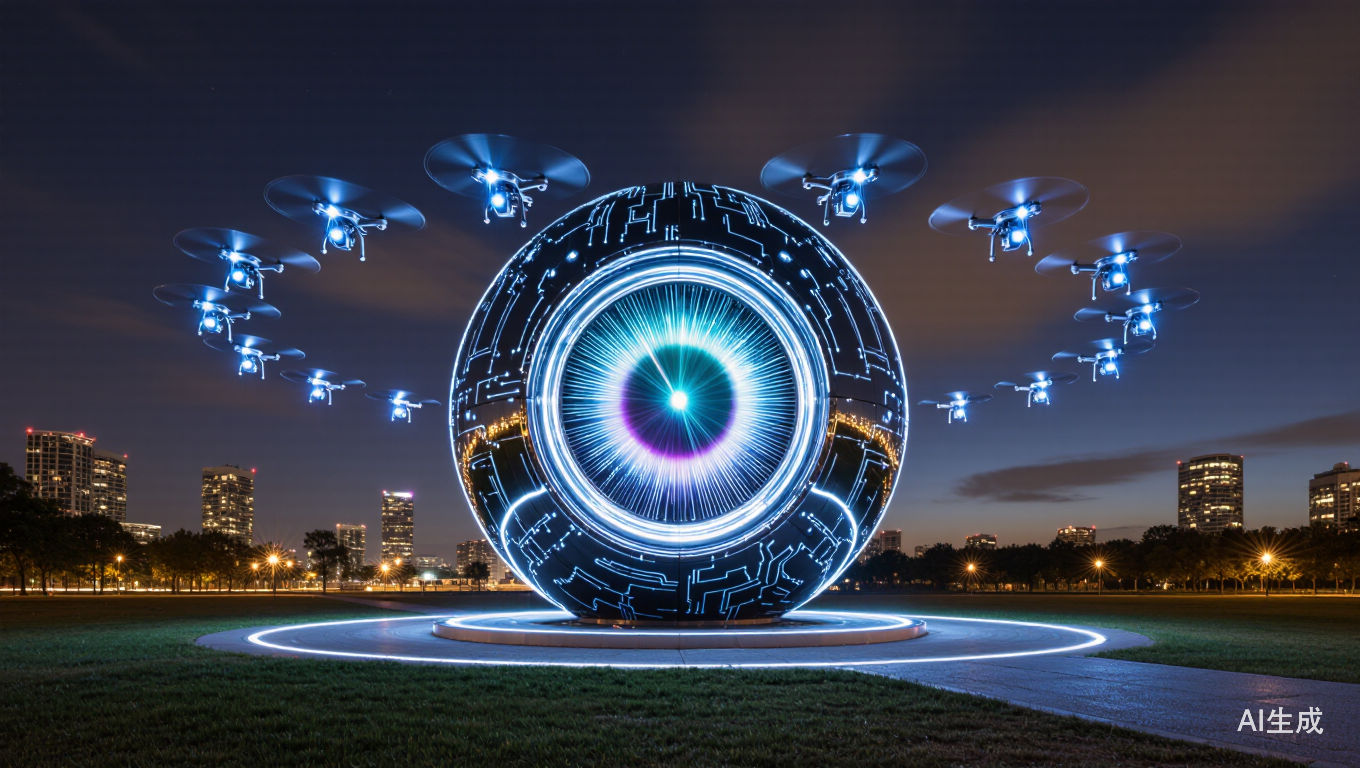 一场科技感十足的低空表演随之上演:22580架无人机腾空而起,16架“空中的士”围成圈编队飞行,光束聚焦于“皖美之瞳”,构成“天地矩阵”的视觉奇观。