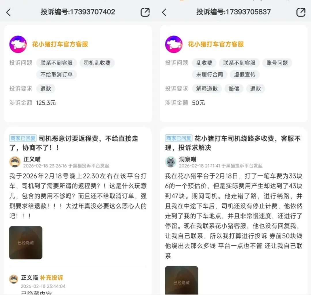 正值春节假期出行旺季,打车平台“花小猪”遭大量投诉。