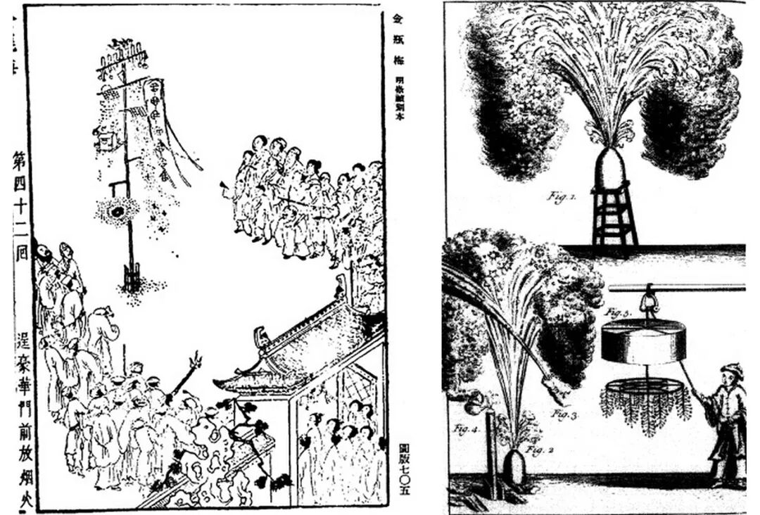 左图:1628–1643年版《金瓶梅》中的架子烟花