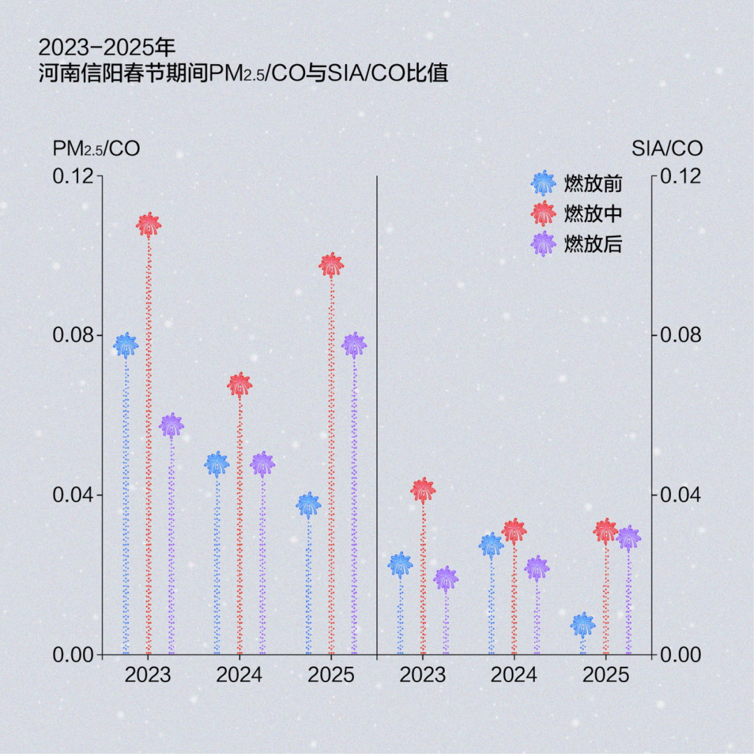 2023-2025年河南信阳春节期间PM2.5/CO与SIA/CO比值