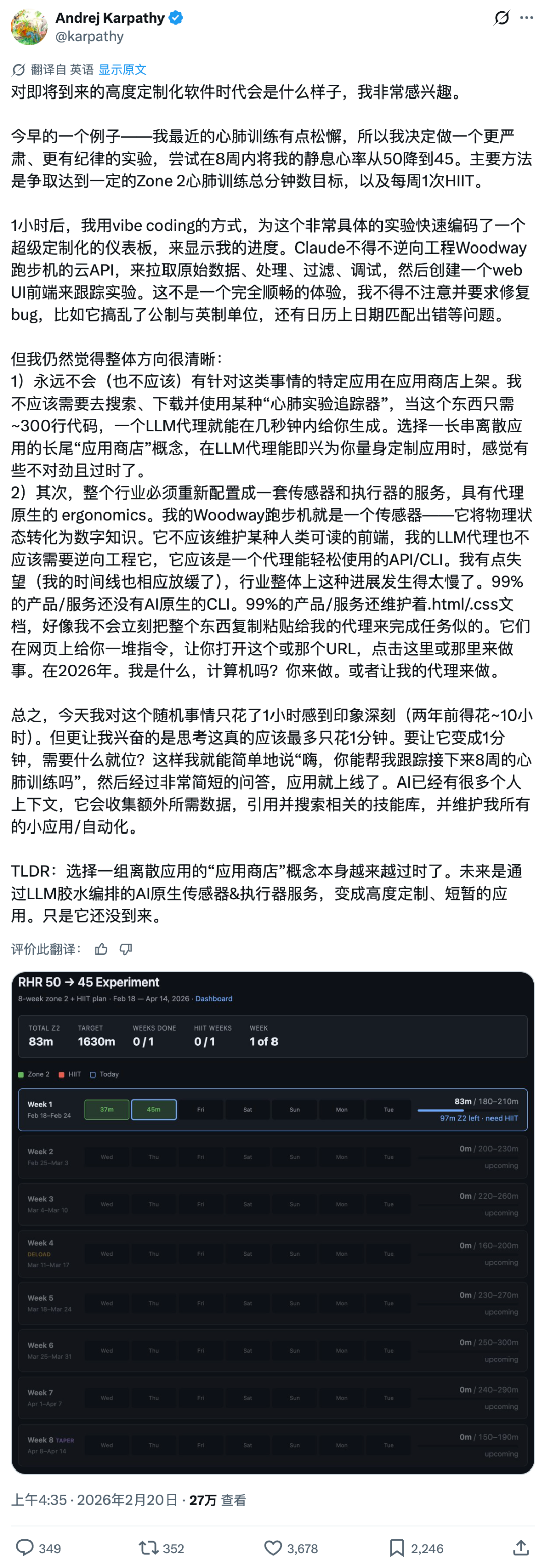 至于这种能力渗透到个人层面会发生什么,这让我联想到了OpenAI联创Andrej Karpathy刚刚发布的推文: