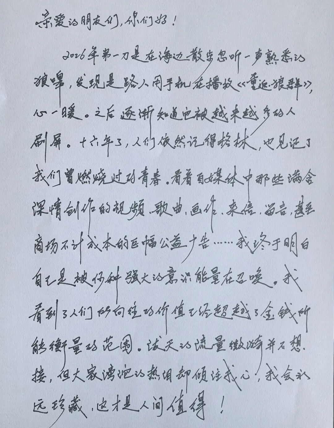 春节重映之际,她留下一封手写信,上面写道:“又或许在冥冥之中,他已经完成了他的涅槃,从一个小小的格林童话蜕变成了一个自由的符号。”