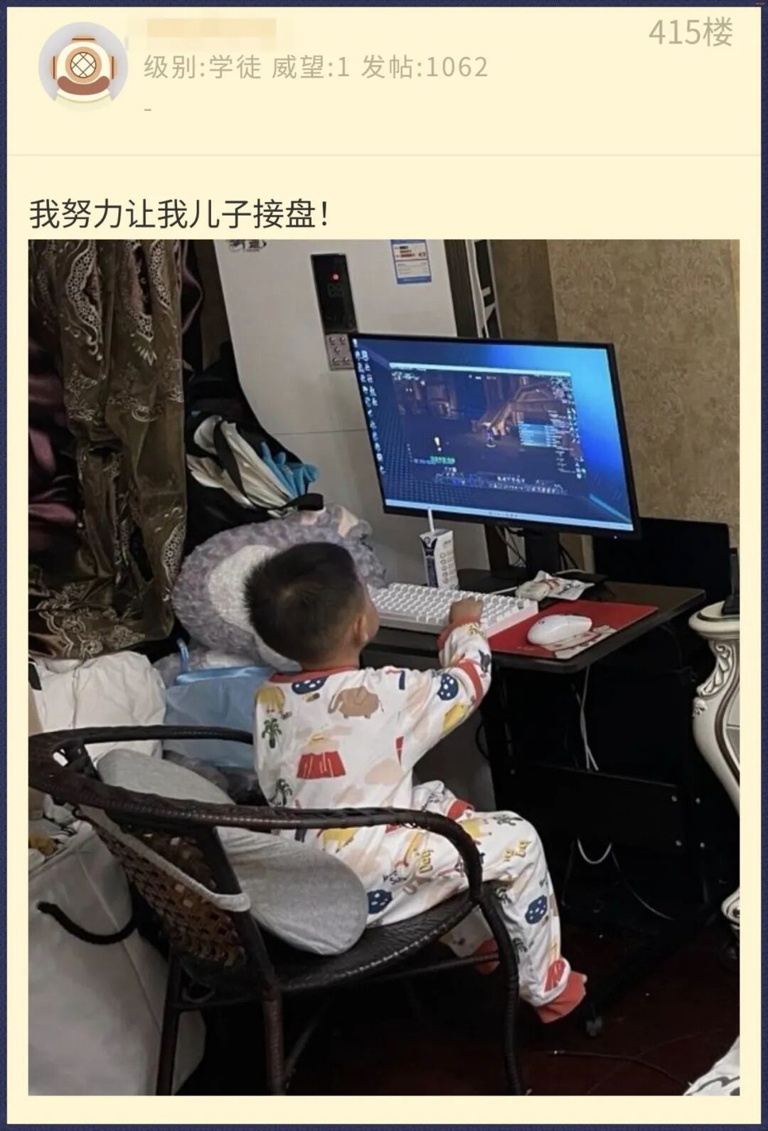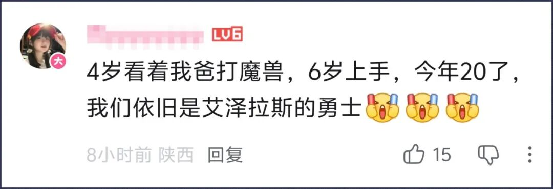 还有人调侃,魔兽传承果然都是靠自己生下一代啊——新玩家还得靠老玩家自己生。看着那些稚嫩的背影,相信未来有一天,他们也会这样看着他们的孩子打游戏吧。