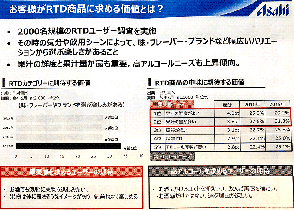 基于这个目的,朝日做了一份针对2000名RTD用户的调查: