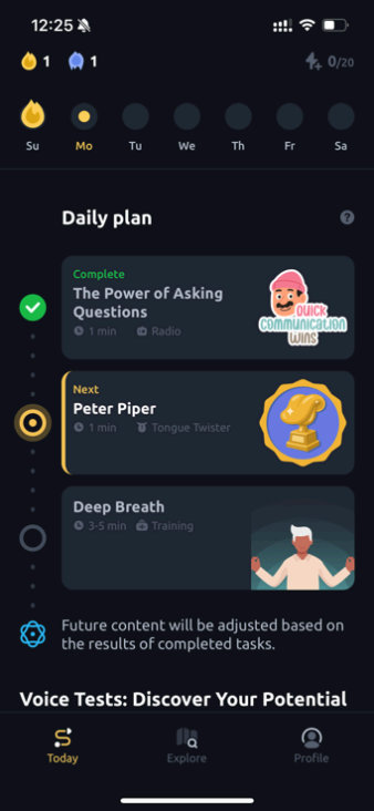 这款产品,同样是一款针对于口语的产品,但是它不像Learna教你在某些场景下该说什么,也不是Boldvoice改善你不地道的口音,教的是“通过发音方式和沟通技巧的练习,让用户说话更好听、更动听”,属于更进阶的需求。