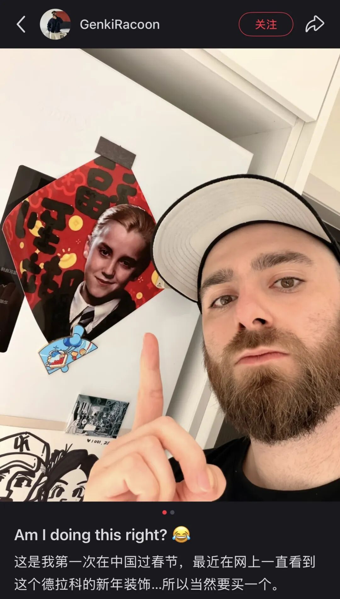 在她的评论区里,老外们分享了自己在春节计划要做的红色美甲,还有家里满是灯笼的红灯笼装饰。老外们说“第一次过春节,有点紧张”“作为一个新晋中国佬,二月不再是情人节的月份,而是农历新年”。