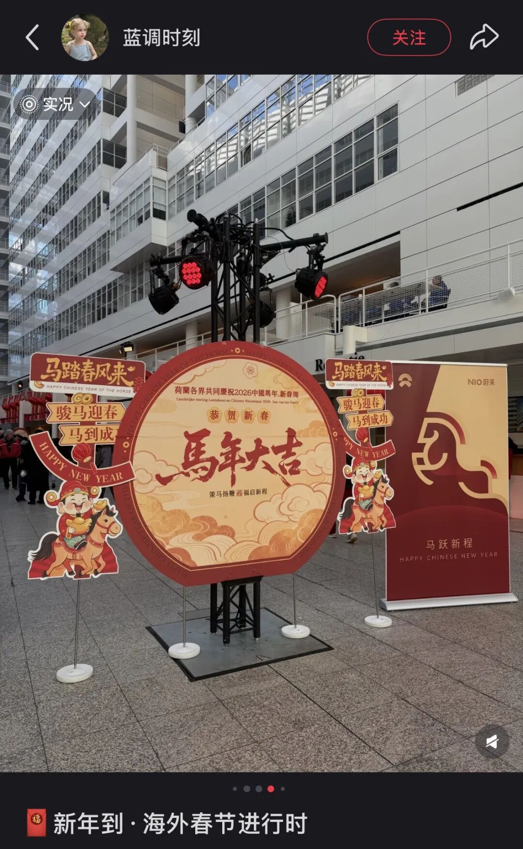 在荷兰海牙,随处都可以看见新春装饰,连城市电车车身上都换上了春节涂装,红色的电车上有熊猫元素,还用中文写着“2026马年吉祥”;在德国,你可以在公交车和地铁上看见总台春节联欢晚会的宣传片。