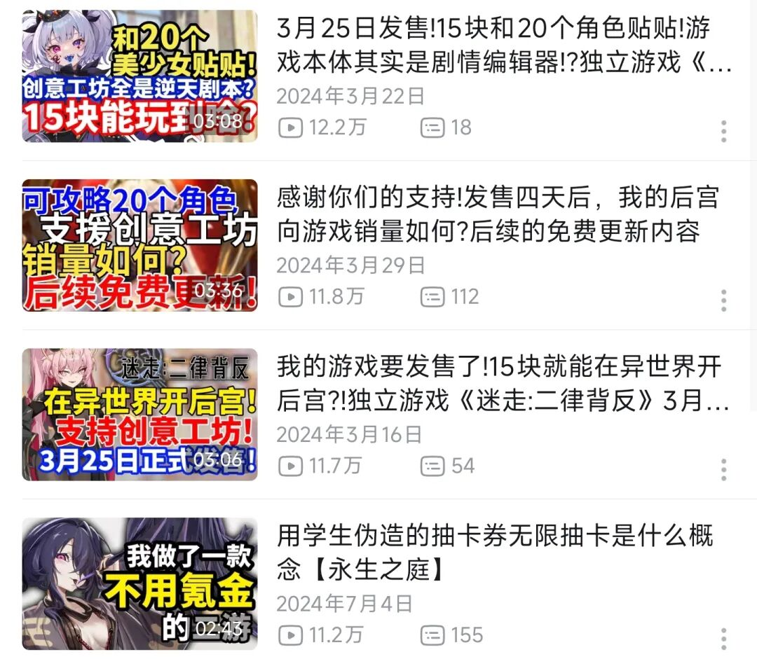 他的成长路径也很有意思:从本科开始自学游戏开发,研究生肄业,全身心投入独立游戏制作。在做游戏之前,他已经是B站上一位小有名气的UP主(1.5万粉丝),发音乐、发游戏开发教学视频。他很早就学会了如何与玩家社区沟通、共鸣。