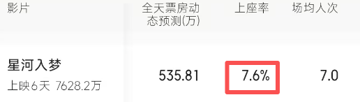 但《星河入梦》的上座率,也是春节档中最低的,在上座率不足两位数的情况下,院线也只好进一步缩减排片。
