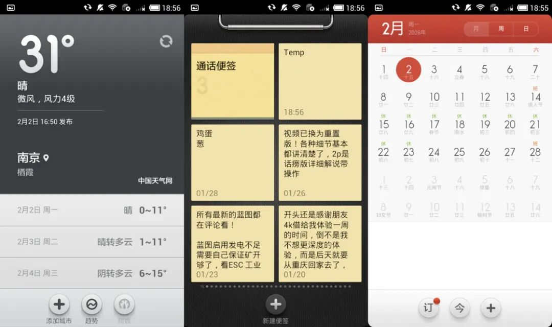 当然,提到早期小米绕不开的肯定是MIUI,不同于小米圣经和如今社区对澎湃OS的评价,彼时的MIUI确实算得上最优秀的安卓系统。当大部分厂商对UI/UX的理解还停留在Holo Design毛坯房+自有应用的阶段时,MIUI则给当时的用户带来了完整的一套重绘图标与小组件,以及花了100万征集到的武汉东湖山水楼壁纸。除此之外,在13年前MIUI就做出了锁屏快捷方式和分离式的通控中心,左右滑动切换通知和控制中心的功能甚至有的系统十年后都没做出来。