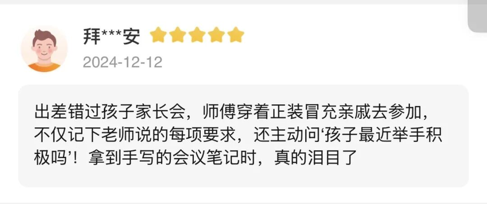他刚干跑腿时,有一天在凌晨1点左右接到了一个订单,请他去家里帮忙看一下孩子。